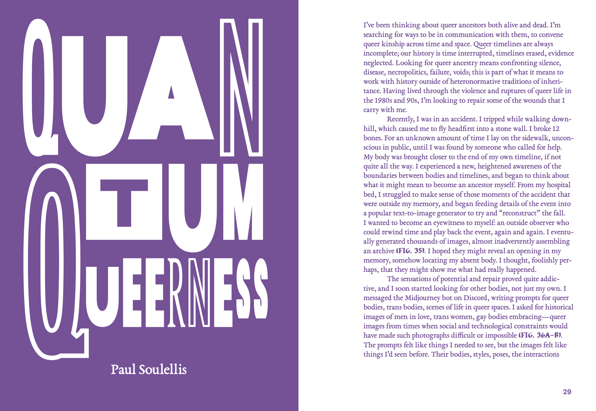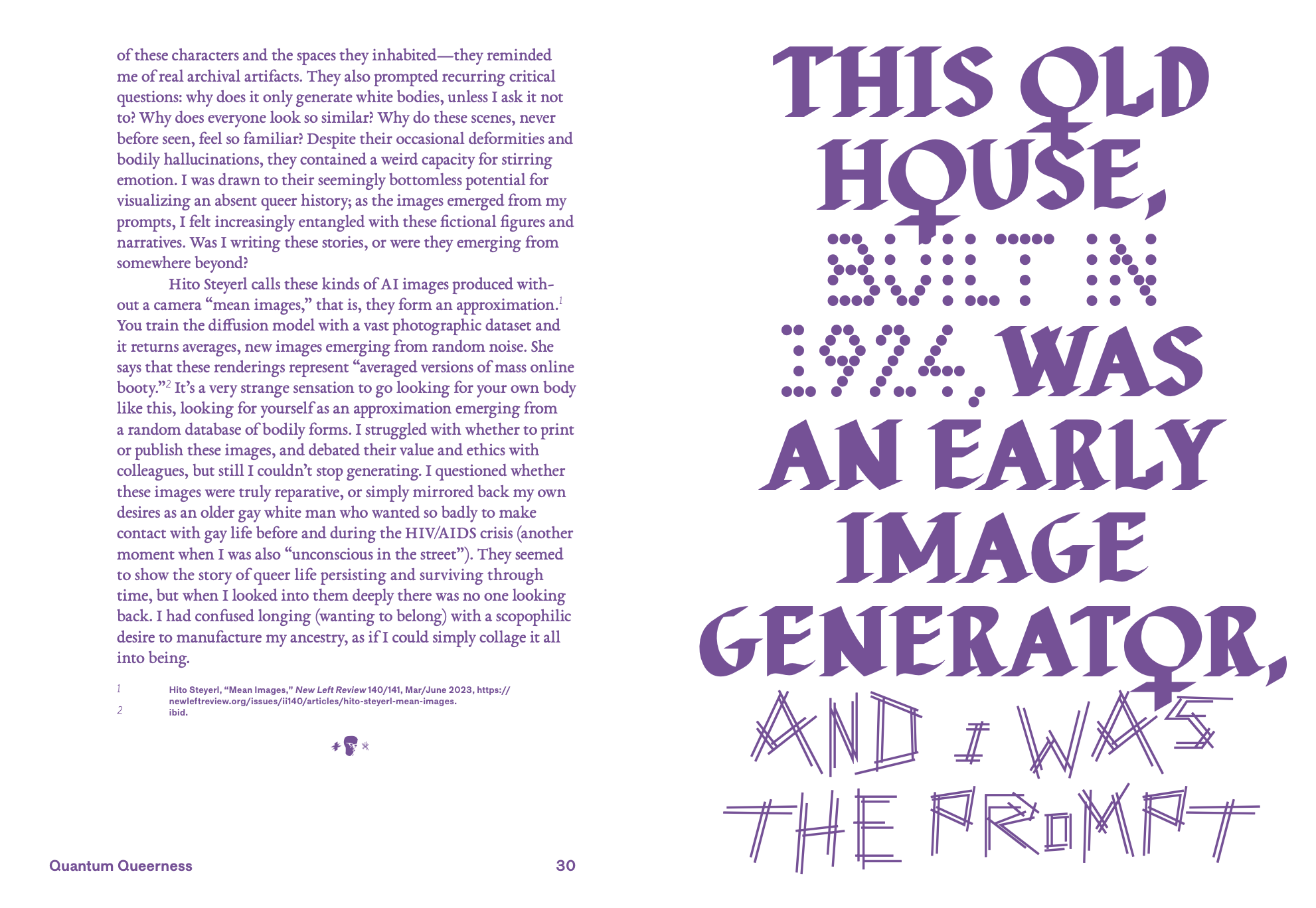 “Quantum Queerness” appears in A Queer Year of Love Letters / Alphabets Against Erasure, by Nat Pyper, published by Inventory Press and LibraryStack in 2025. “The book debuts a new essay by Pyper, and includes contributions from Paul Soulellis, Claire Star Finch, Silas Munro, Lukaza Branfman-Verissimo, Rosen Eveleigh, and G. B. Jones that offer vital perspectives on queer archival practices, language lineages, design as protest, and love as the basis for research. Part reader, part type specimen, part love letter, these fonts foreground the politics of queer memory while opening up new avenues for writers, designers, and curious readers.”—